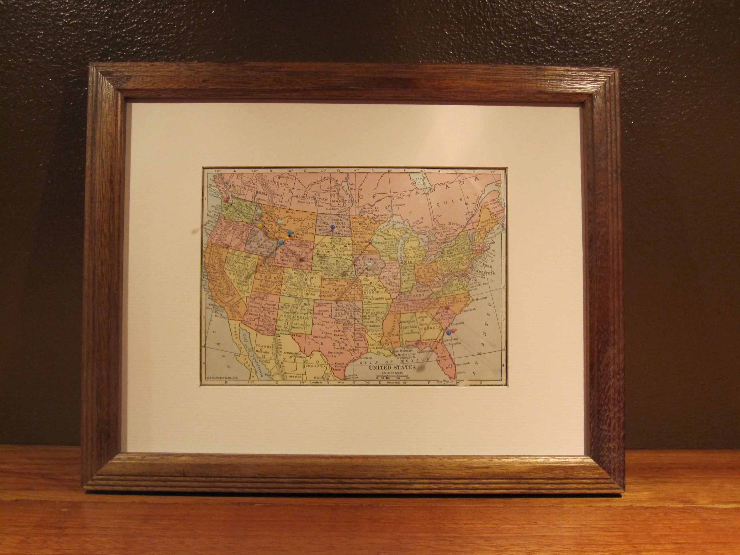 Here’s my DIY version, complete with places Ben and I have traveled. I LOVE this idea. It’s always changing, too. I just need a map with Alaska to update the trip we took last year.
