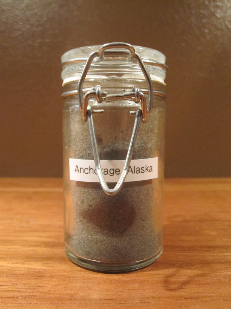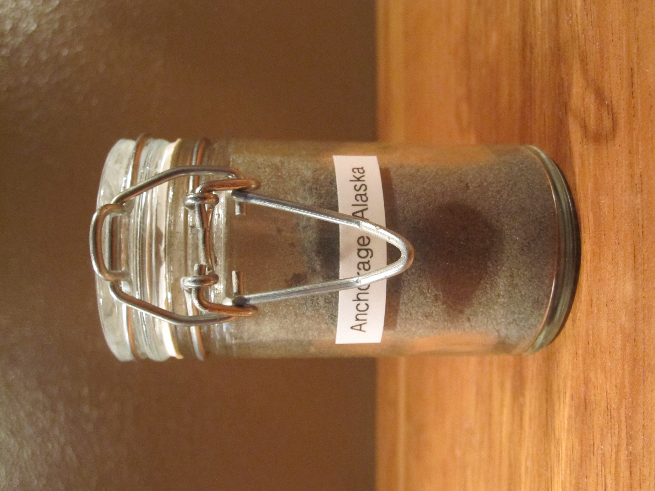 I like to get sand from everyplace we visit. I feel like I have a little piece of oceanfront property. I used different, smaller jars for the sand, but used the same labels.