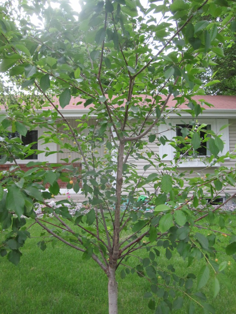 Most of our trees are combination trees. There is one main trunk with 3 to 5 varying types of fruit grafted on. We now have 7 cherry trees, 3 apple trees, 3 pear trees, and 2 plum trees.