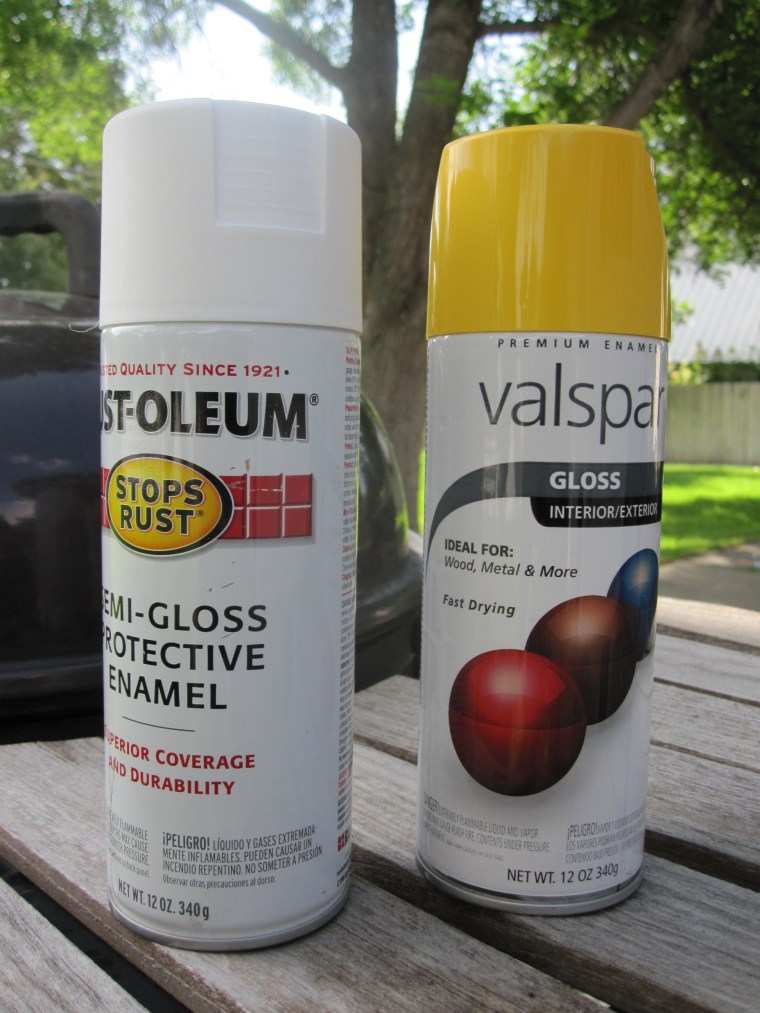 I picked up Valspar’s  Bumblebee Spray paint to use on the frame and used a can of flat white spray paint to paint the metal.