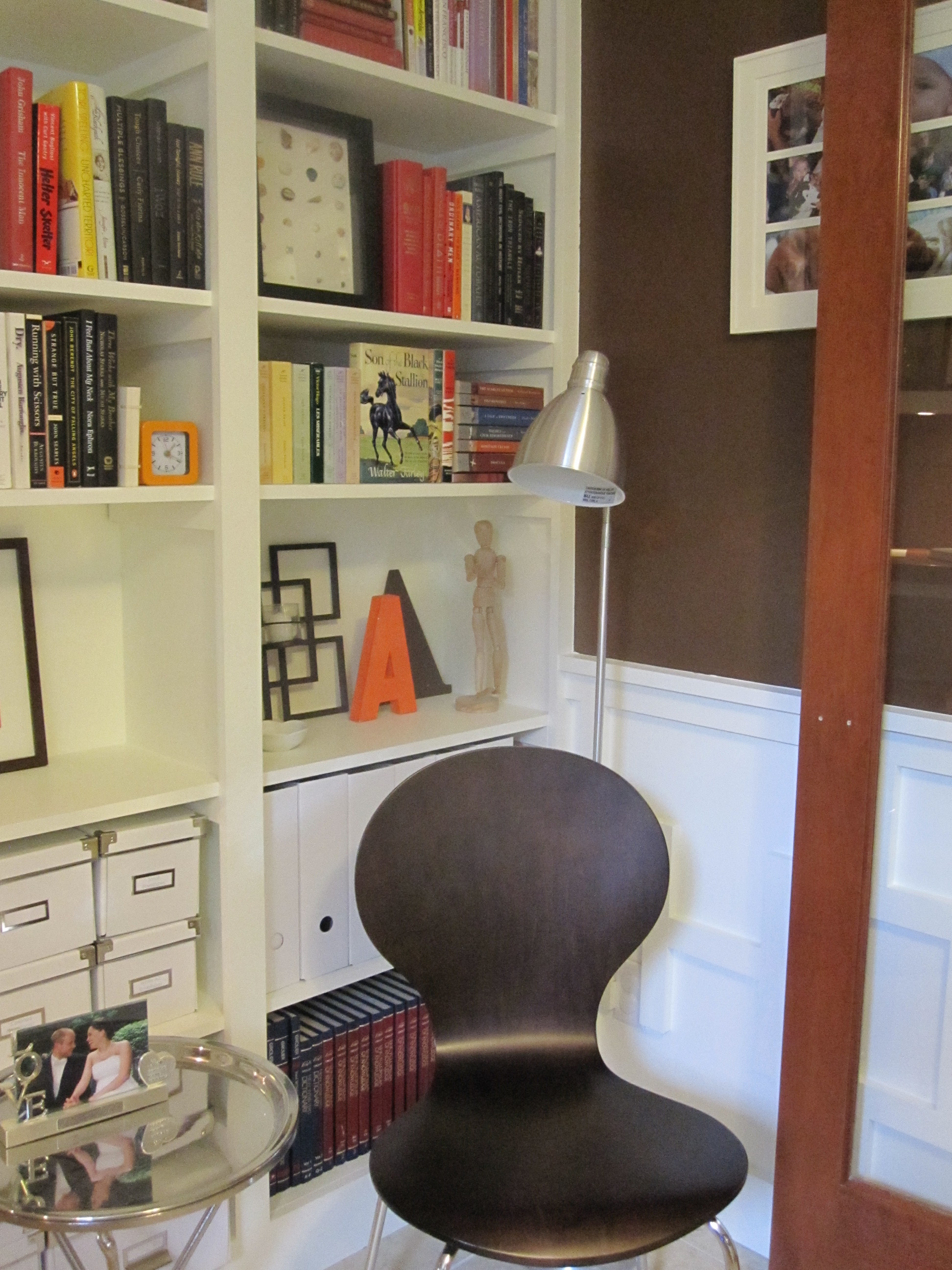 A few weeks ago, our Target had a clearance sale of said chairs, for $49.99. I decided to buy another set, but was disappointed to find that both of our local Targets were sold out of the espresso color. Wah-wah. Imagine my delight when I spotted about 12 sets of chairs in a Minnesota Target on our recent vacation. I snatched two sets (yes, four chairs. Hey, they stack so we’ll save space, but have extra seating for parties!) for $69.96. Yep, four chairs for the price of my original two.