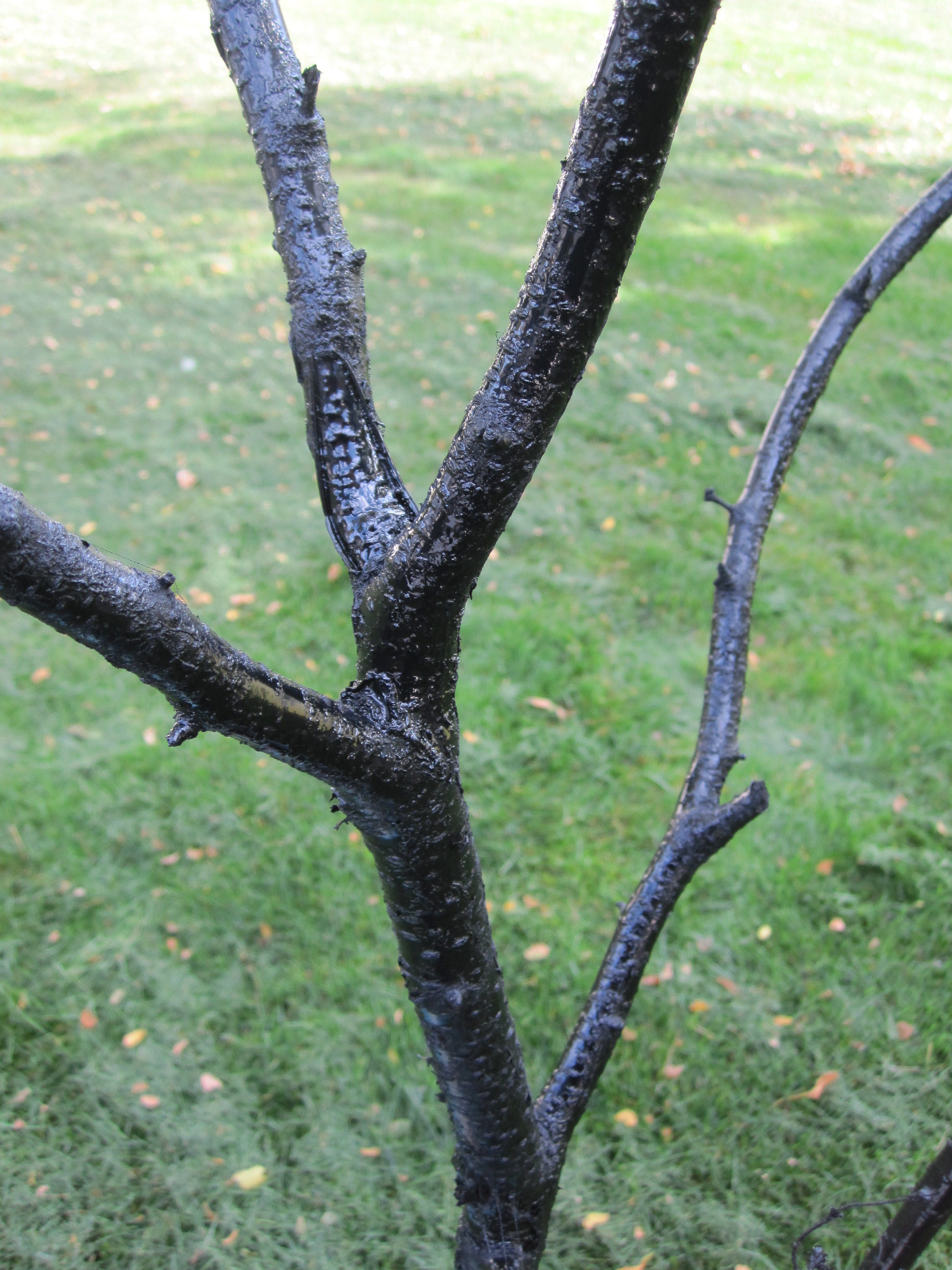 Using a can of black gloss spray paint, I covered all areas of the branch and let everything dry. Then, I applied a second coat to make sure the color was truly black. Super simple.