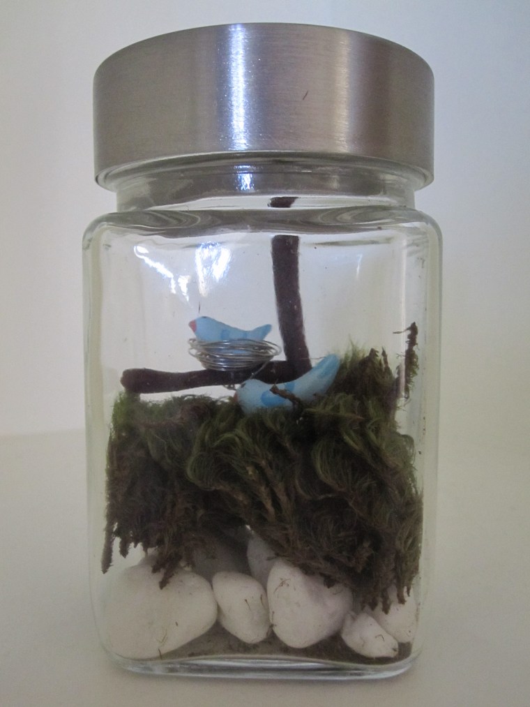Prize: One set of terrarium critters including one large bird, one small bird, one egg, one wire nest and one tree.