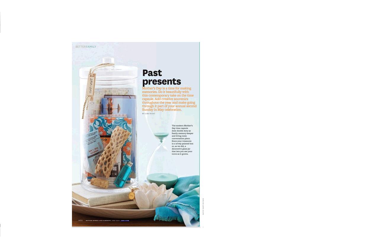 While reading the May issue of Better Homes and Gardens, I spotted a Mother’s Day idea. Remember, Mother’s Day is this Sunday, May 8th. A modern take on the classic time capsule to celebrate mom.