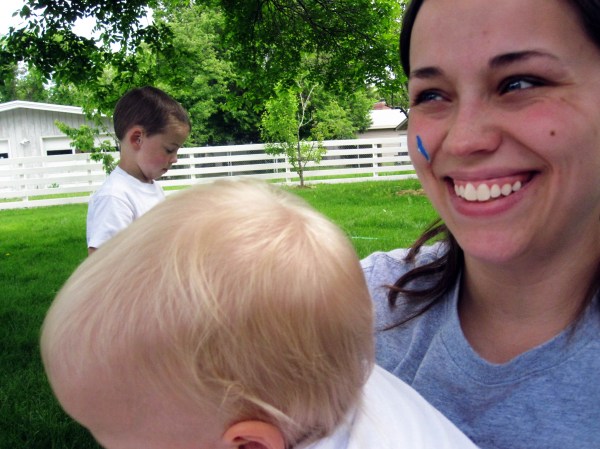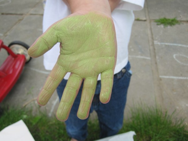 Even though I wasn’t painting, I didn’t get away unscathed.  Ev painted all over my hands, legs and even took a quick swipe at my face.