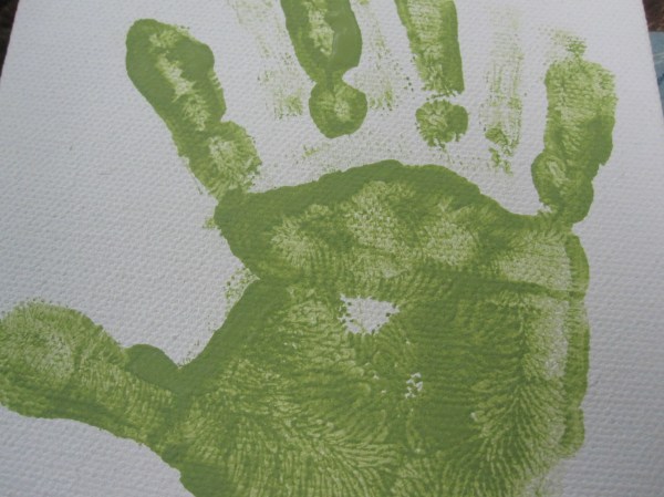 So add more paint.  Then, hold the helpers hand and bring the canvas to the hand, not hand to canvas.  Gently push in place and remove.