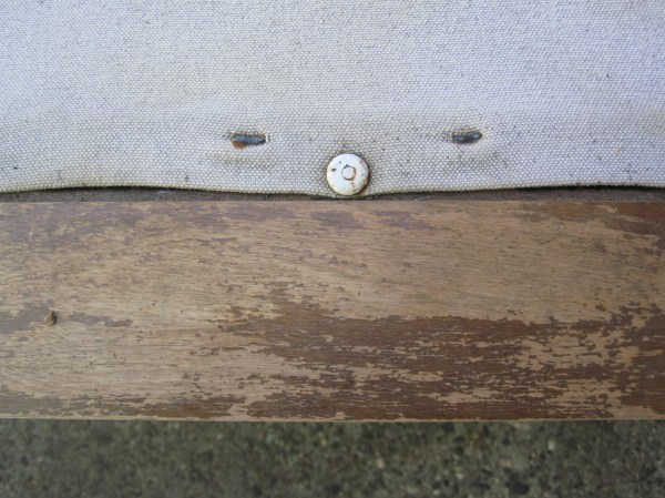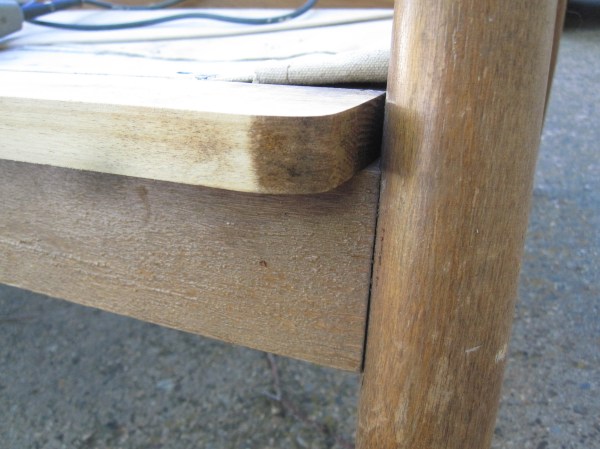I finished refinishing it. Before we get into the details, here are a few more before photos of the worn finish. This was at the front edge, where the cushions rest.