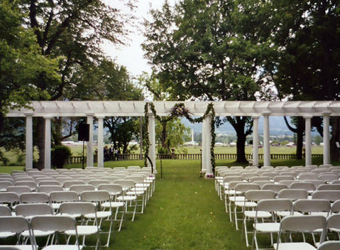 A crew was prepping for a wedding and the arbor doubles perfectly as an aisle or archway.