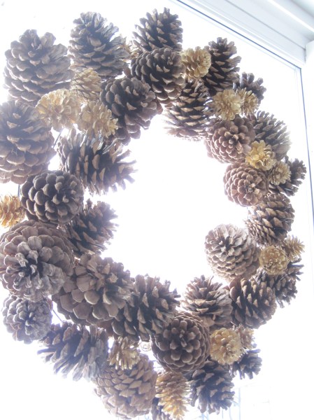 Craft a pine cone wreath to hang in your house on greet guests at the front door.