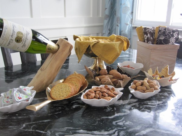 Gather leaf-shaped dishes, brass accessories, fall colored napkins, and nuts to assemble a festive table setting for your next party.