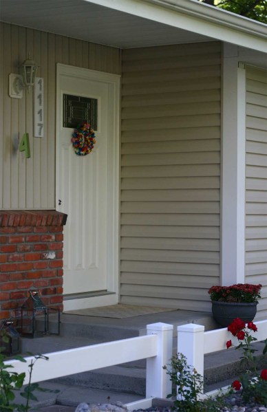 First, we jazzed up the front porch with a balloon wreath, a number four, and a planter of red mums.