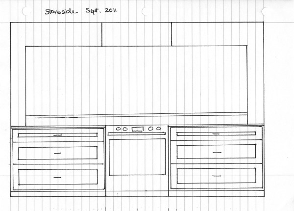 We’ve made some kitchen changes since I made those lame sketches in 2009. Here’s the new and improved 2010 model. Side note, I hate the phrase new and improved. How can something be both new and improved? If it’s new, there’s no room for improvement. If it’s been improved upon, it’s not new, is it? Ok, rant over. New kitchen drawings, courtesy of Lowe’s.