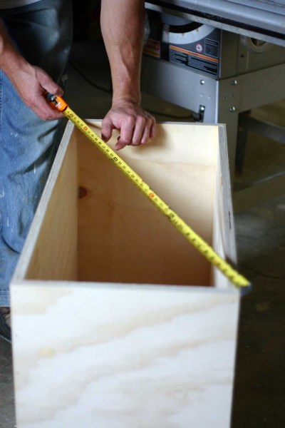 After each cabinet piece was assembled, Ben checked to see if everything was square by measuring diagonally each direction.