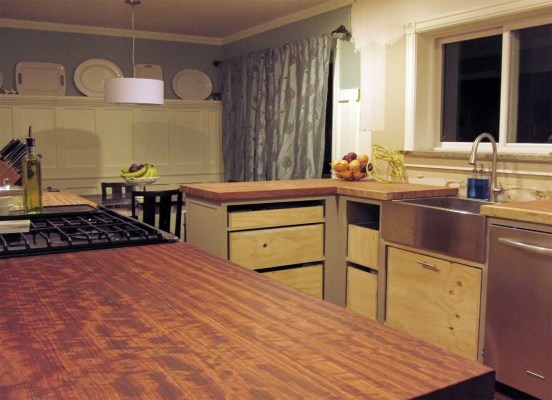 Kitchen with First Coat of Paint and Counters from Kitchen Door