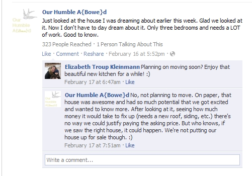 True to form, Ben started calling local companies to get quotes for shingles, siding, windows, and the pool.  It turns out, it wasn’t as expensive as Ben originally thought.  Armed with new information, on February 21, we made a low offer on the house.  The next day, we received a counter offer.  We thought it was too high and pulled out of the running.