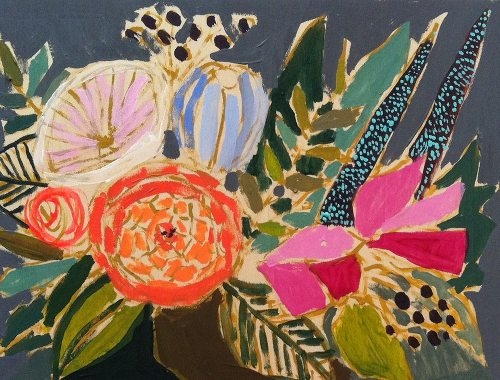 I have been drooling over this pretty floral painting by Lulie Wallace, so I decided to use it as my inspiration.