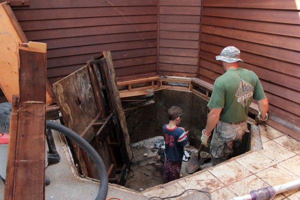 After the tub was out, V wanted to get in the hole.  He and Ben assessed the situation.