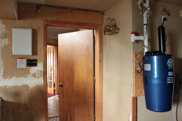 Back at our old house, Ben came up with the genius idea to install a central vac system.