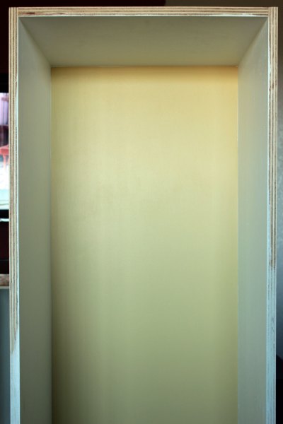 Two coats of color, then I painted the rest of the insides with white satin paint and hauled them upstairs.