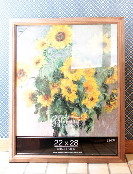 Once my design is completely cut out, I carefully peel back the template. Because I already had one framed map, but not another frame to match, I bought two 22 by 28 inch plain wood frames from Hobby Lobby for 35 bucks thanks to a 50% off sale. Not the prettiest frames, but spray paint can fix that.