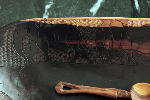 The larger of the two bowls has elephants carved around the edge. J said he watched the guy hand carve these. How amazing is that?!
