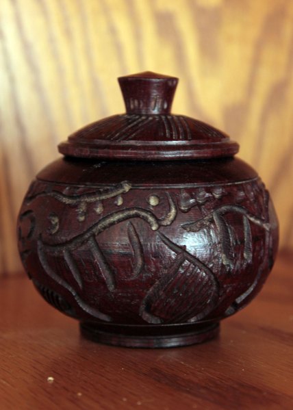 For me, J chose two Ebony bowls, a wooden spoon, and a small lidded jar.