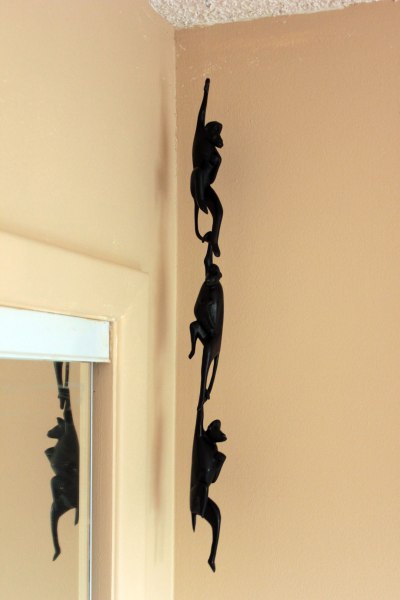 This summer has been busy for us, with many visitors. First, Handy Sammy’s family spent a night with us, then my sisters and their boyfriends stayed for a week. After that, Handy Sammy’s family spent another night with us before going home. Ben’s brother came back for a few weeks from Africa with his wife and her family. He also brought Ben and I fun African gifts. For Ben, J bought a set of hand carved Ebony monkeys.