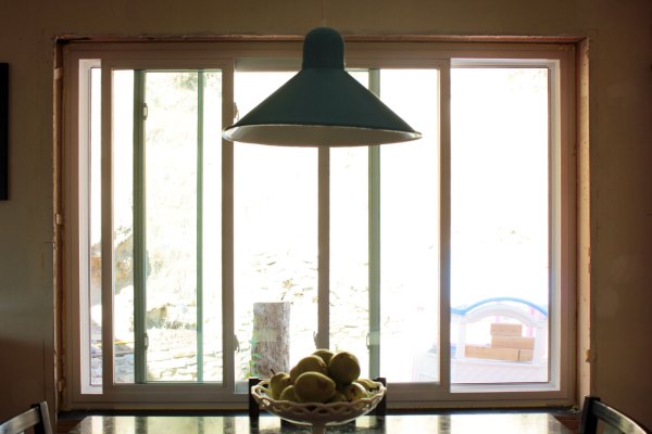 Right now, replacing windows at the back of the house is the focus for a few reasons.  It’s small, not highly visible, and one of the windows by the sliding door had only the inner pane of glass.  Somehow, the previous owner shattered the outside pane, leaving us with this: