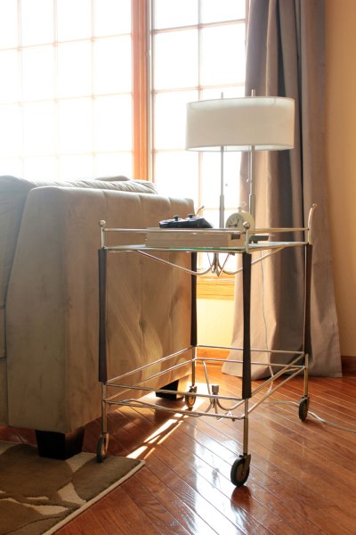 Because it was a decent size, I rationalized we could use it just about anywhere, and not only as a bar cart. Yeah, Ben’s jug-o-wine wouldn’t look too fancy on this bad boy. The details were so nice. Double tiered, wooden legs, and on castors.