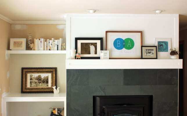 Family-Room-Bookshelf-Arrangement-Books-and-White-Frame