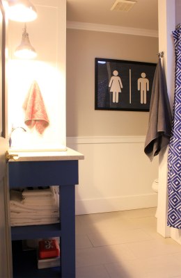 Thank you! I actually made the art by cutting out the man and woman shapes from white paper and mounting them to blue. Super easy, but here’s a link: https://ourhumbleabodeblog.com/2012/07/11/un-homme-une-femme/
