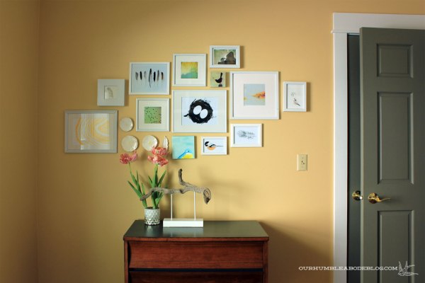 Instead, a recently found Craigslist dresser brings the warm wood tones over to this side of the room. Added storage is always a plus, but I love having a surface to hold decorative items, too. I hear masking tape is the new, modern alternative to picture frames, didn’t you? Haha, no, a frame will happen…eventually.