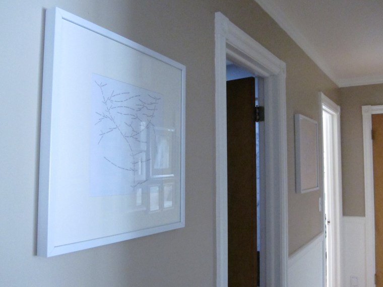 When we’re not playing, the map takes center stage on the art wall, right next to the customized Made by Girl alphabet print and our free Valentine’s day All You Need is Love printable. If you’re afraid this is going to fall on Everett, don’t fear. I placed a few dots of sticky tack behind each corner to keep it firmly in place. Just a few more framed prints and this wall is done…for now.