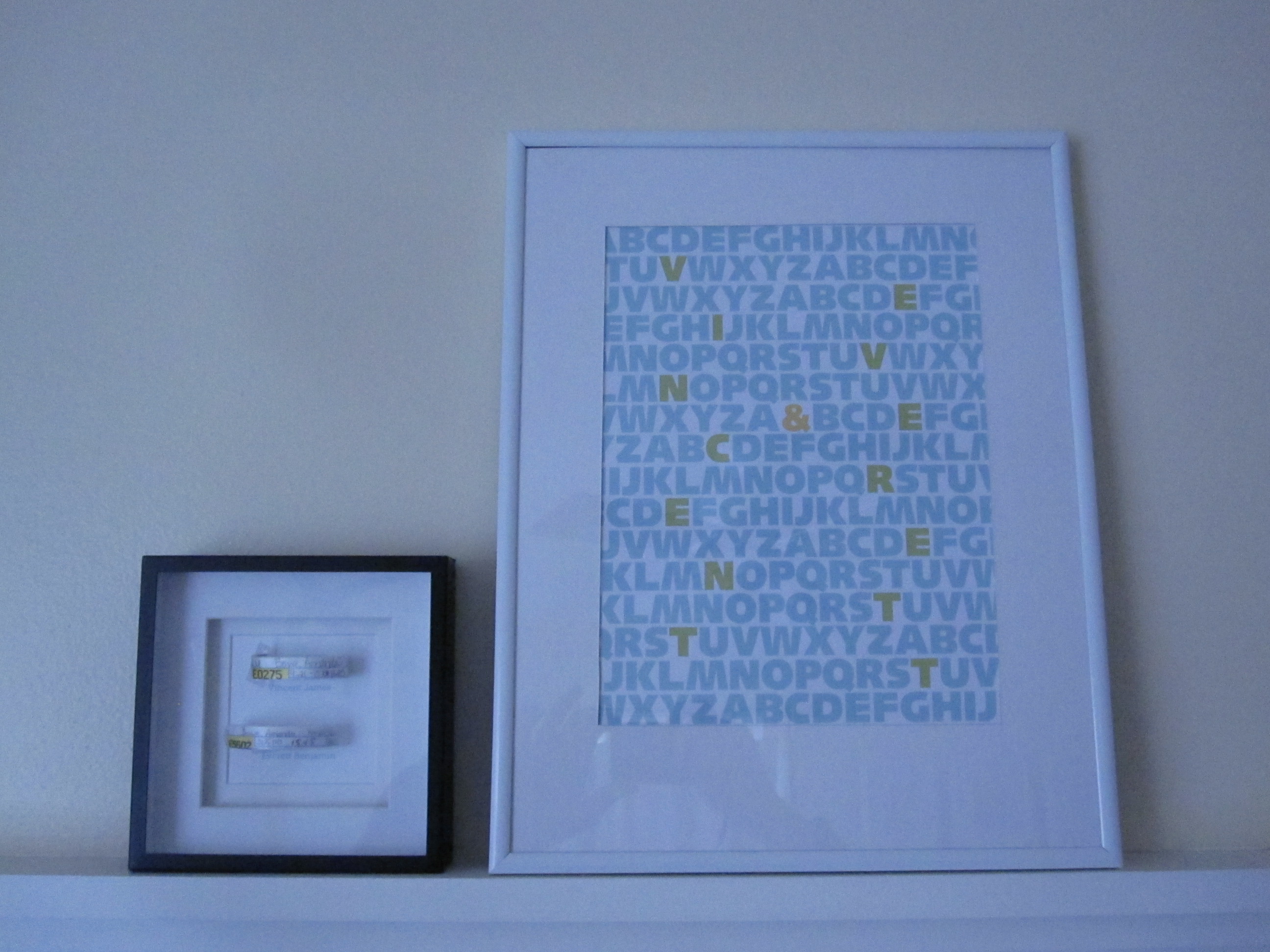 The hall frames were black before I decided to attack them with white spray paint this summer to lighten the group.