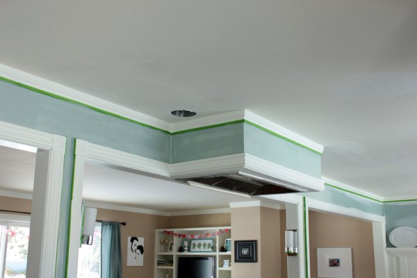 Here’s where we’re at now.  You can see we chose to paint the vent hood like the rest of the walls and door frames.  No special treatment.
