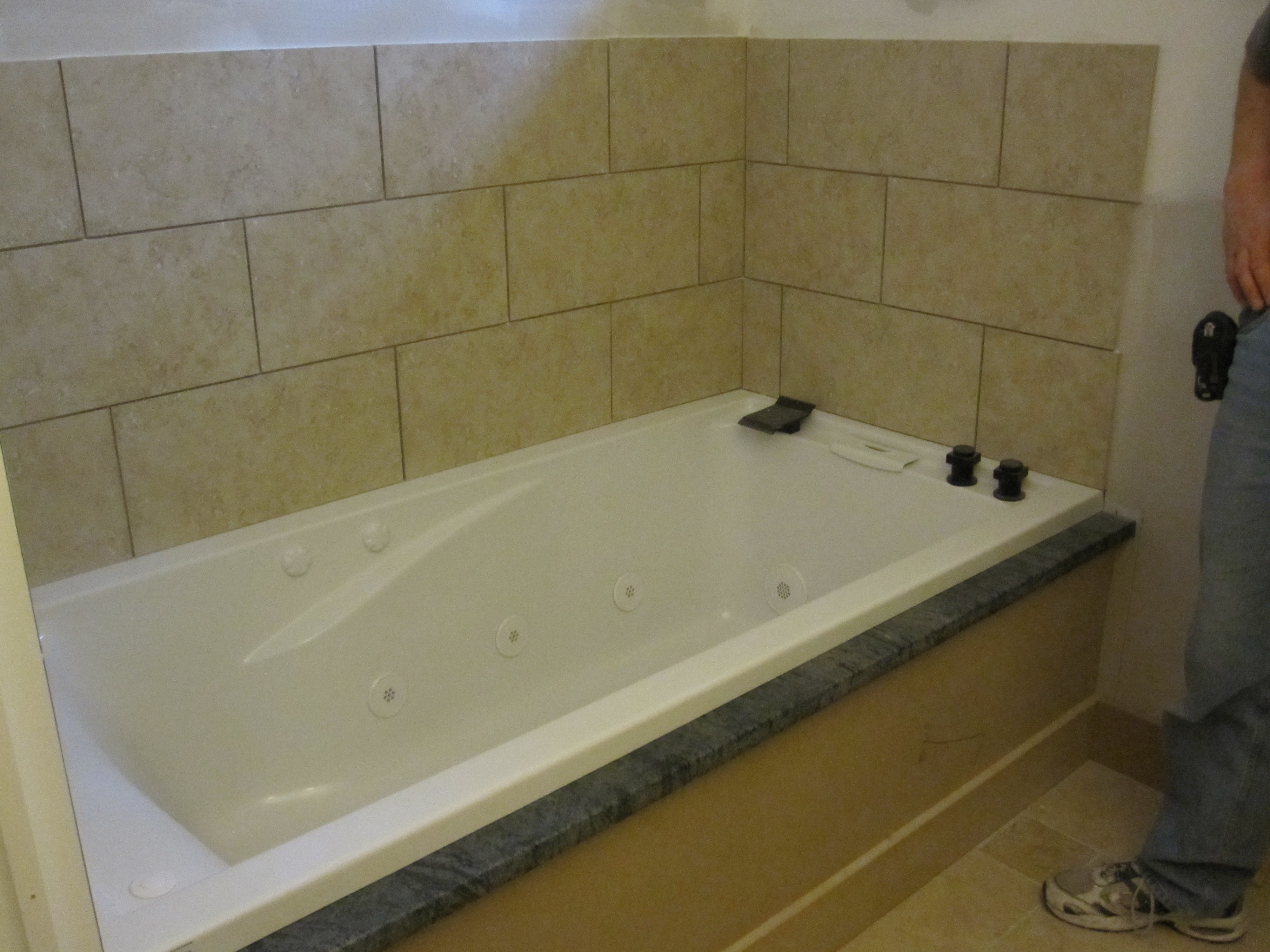 Still to do: build drawers and false front for the vanity, start finish the shower under the stairs, which will also be a steam room, and hang the mirror.