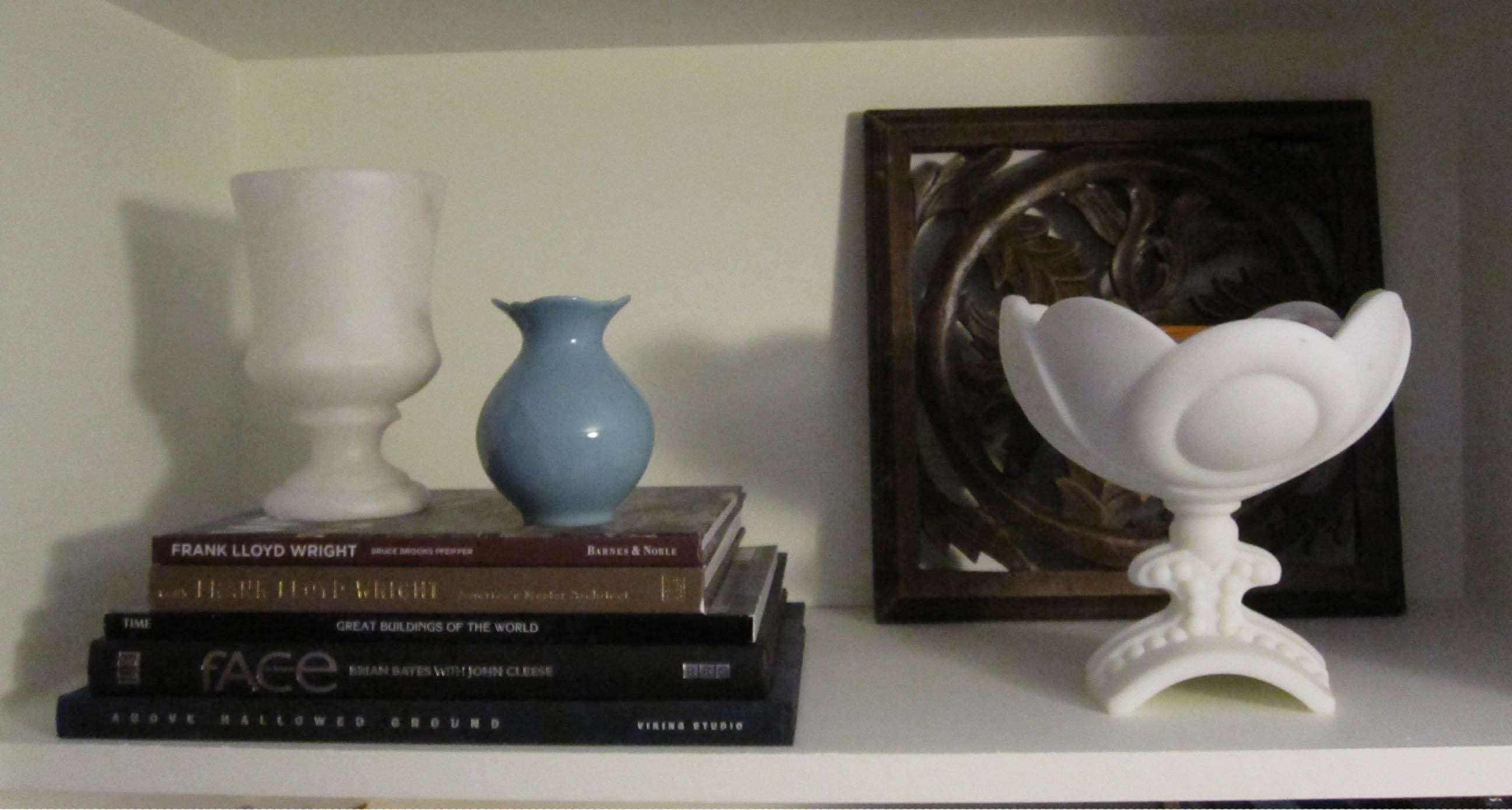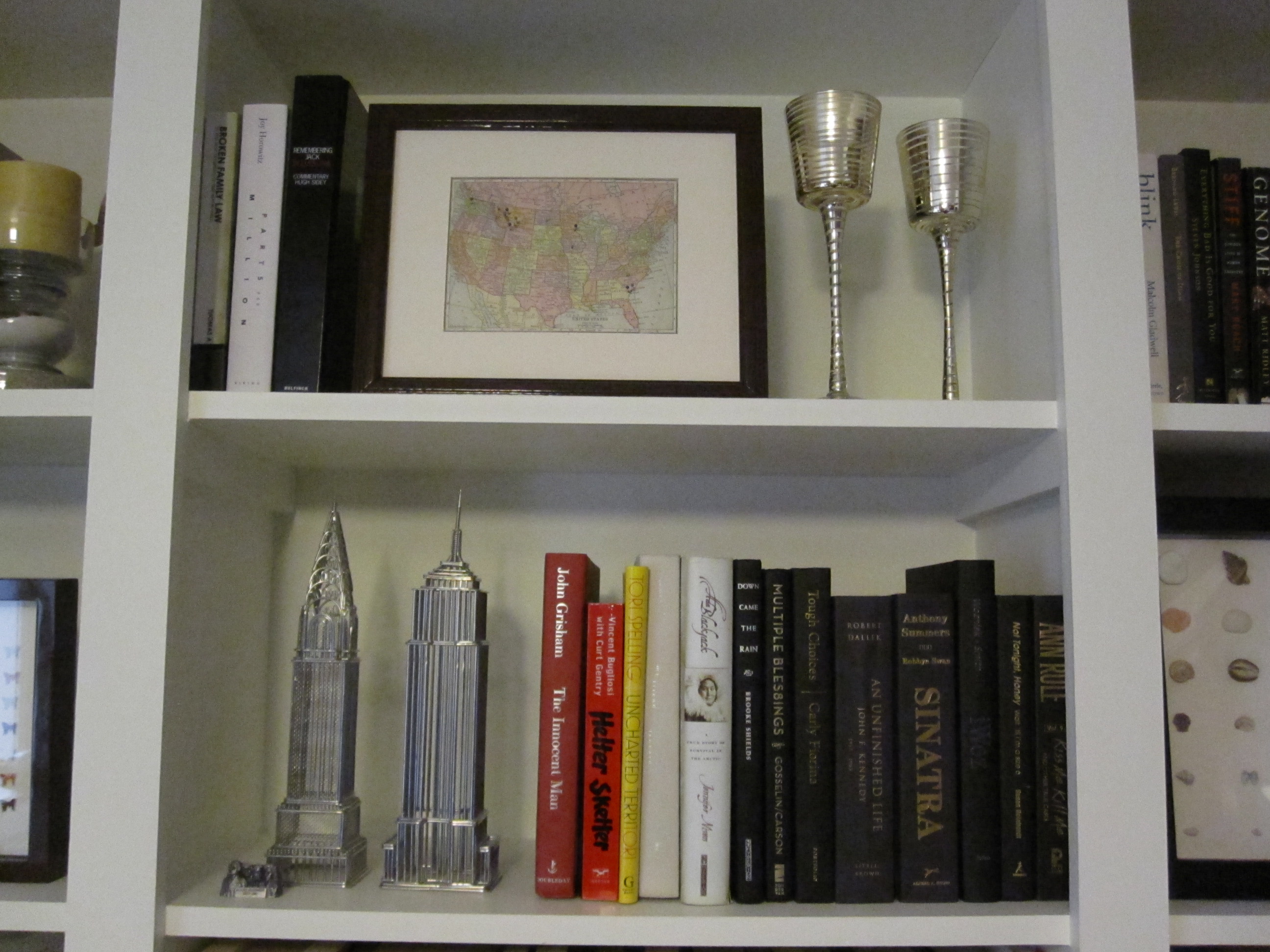 When we released our Modern Portrait print line, I decided to switch up the artwork on my office bookshelves. I had a geometric cut out set.