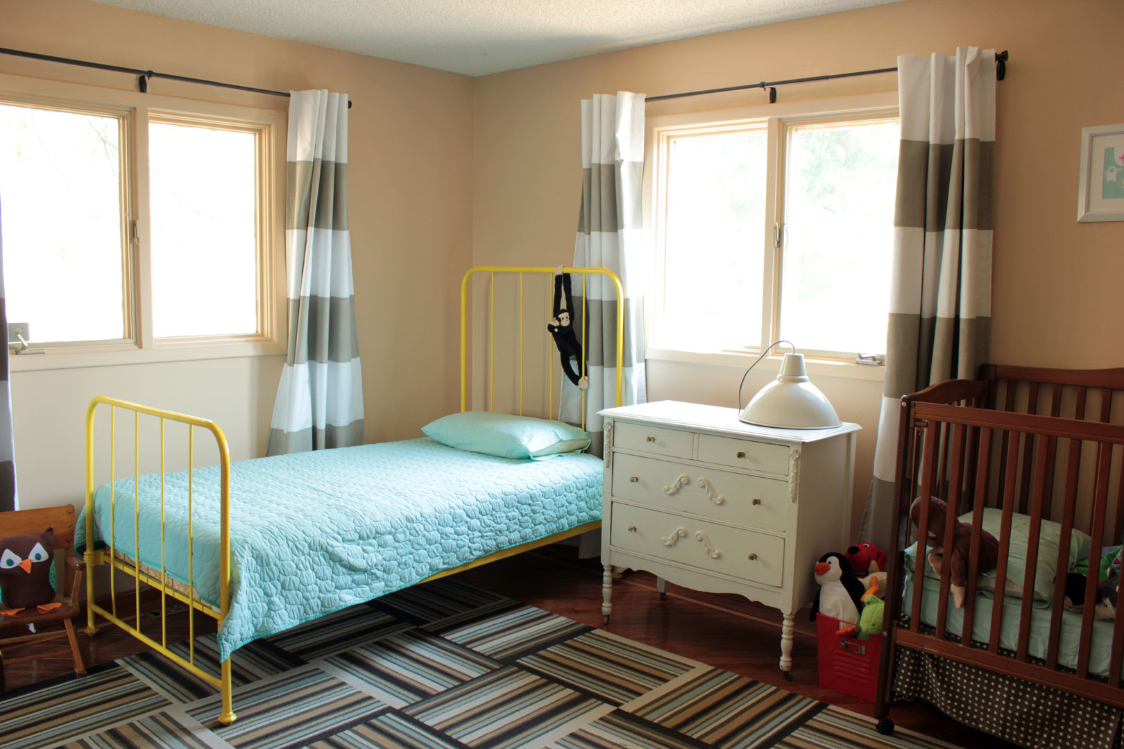 Luckily, our windows sit about 19 inches off the floor, so we didn’t have to use tempered glass. Wahoo for saving a little money.