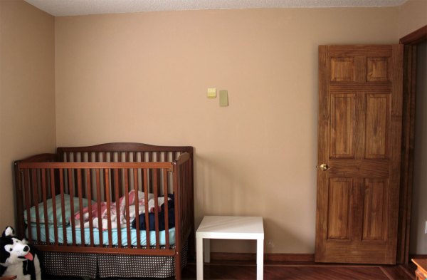 We’re still working on the main bathroom, so we’ll share pictures soon. Floor tile has been delayed and should be here tomorrow. The boys’ bedroom layout is very similar to their old room, just a few feet wider. Here’s V’s side, complete with a dresser due to the lack of organization systems in this house.