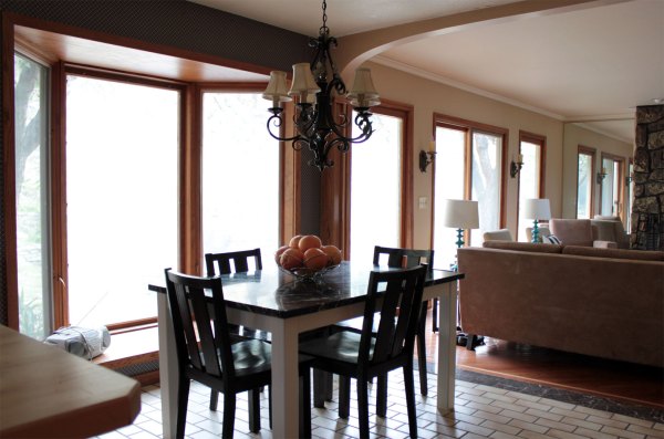 Okay, enough of my whining. Here’s our empty dining room. The stool and lantern are for the deck and the chairs are there as additional seating.