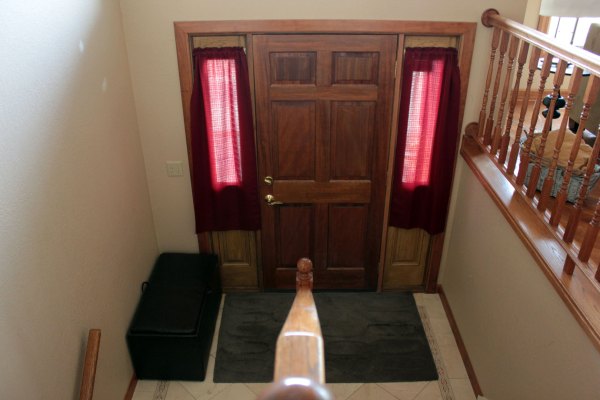 The entry isn’t huge, but we have a rug and storage bench for putting on shoes.