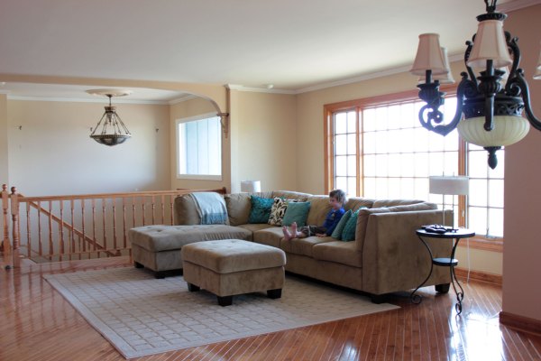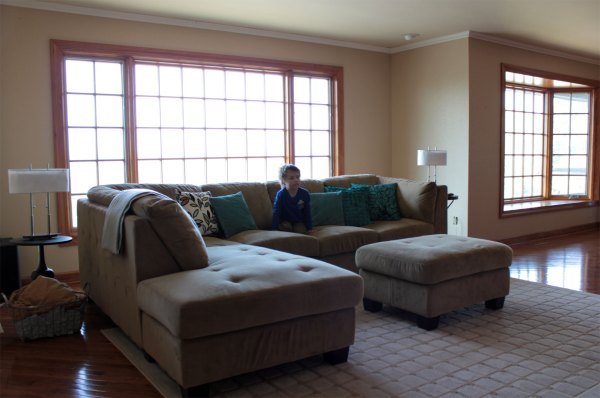 Our old sectional, which lived in the theater room at the first house, fits in the new living room with plenty of space.