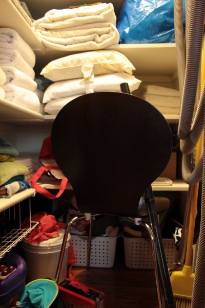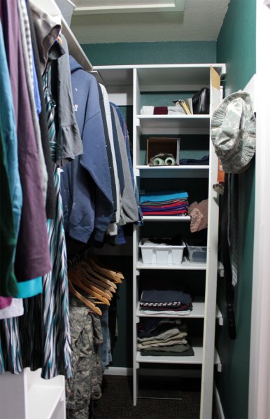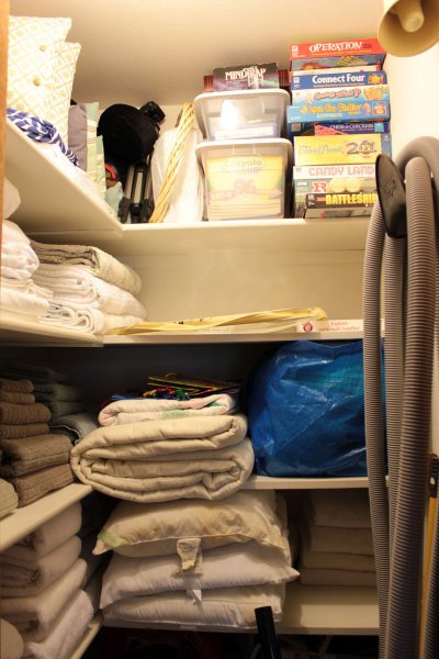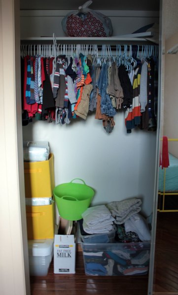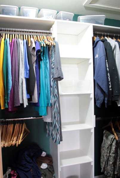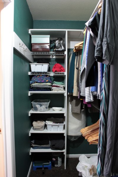 I finished painting the closet over the weekend and put our clothes away. Instead of a pile of clothes, we’ve got a stack of empty bins. Wahoo!