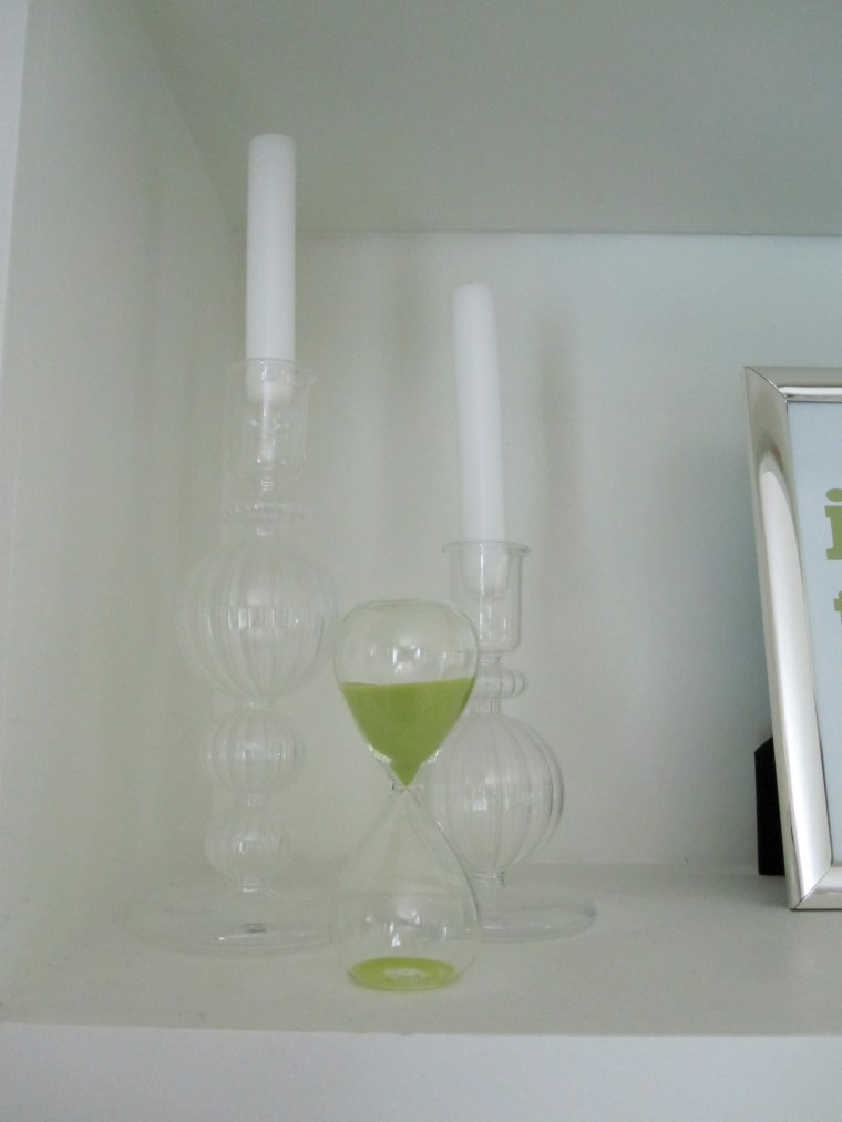 Mirror: Found in the Trash-from Target Bedside Carafe: Two Glasses from World Market Shell: Target Artwork in the Hall: Family Tree made by Me