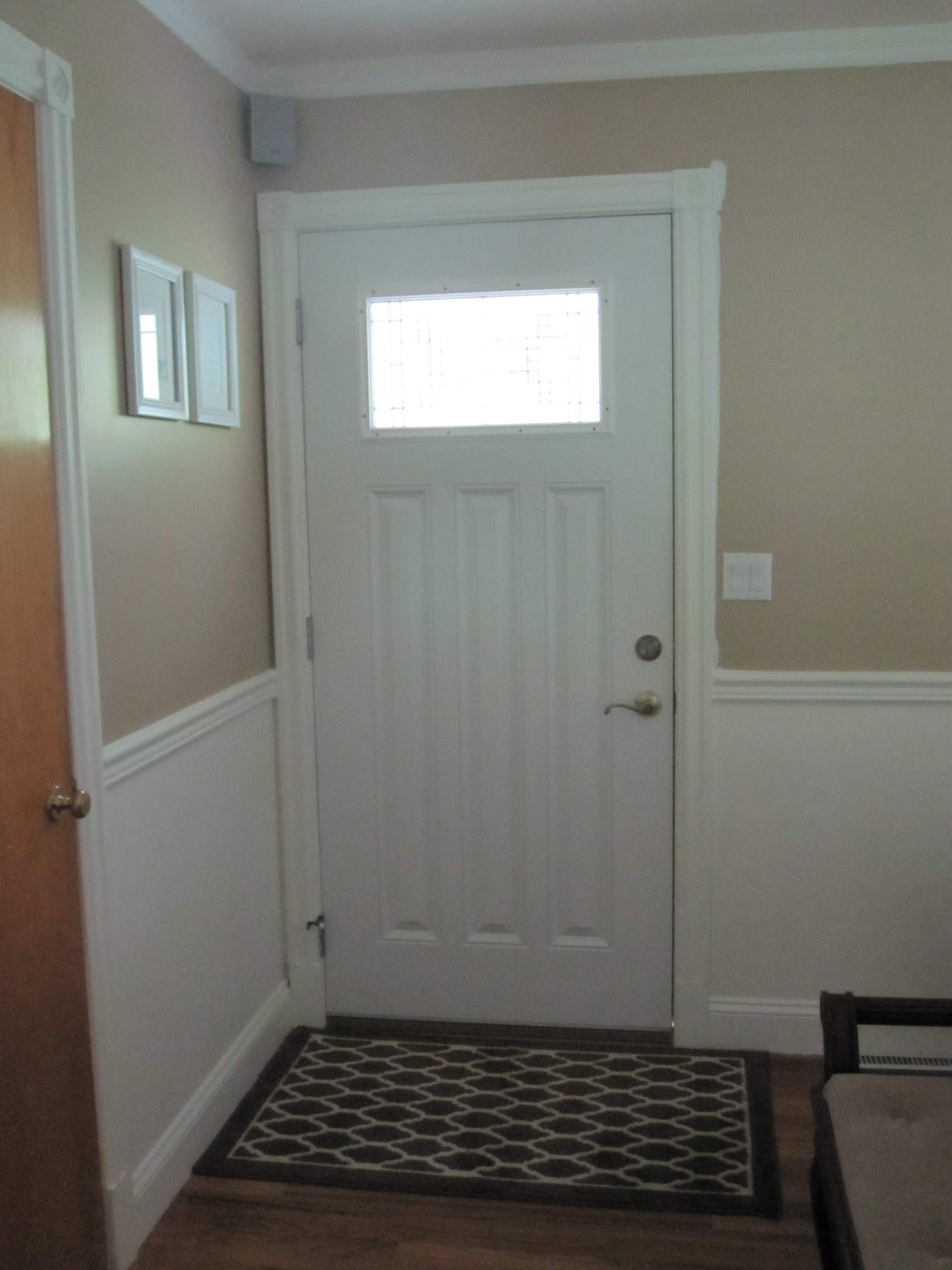 Paint: Wicker Chair by Olympic and Behr’s Vermont Cream color matched in Wal-Mart’s Colorplace brand Rug: Flor Sofa: HOM Furniture Chairs: Dolce Lounge Chair from Target End Tables: Dror by Target Lamps: TJ Maxx Curtains: Target Throw Blanket: TJ Maxx Pillow Covers: Hand Sewn Fabric from Joann Bird Candleholder: Target Picture Frames: Wal-Mart, Target, Michael’s Artwork: Custom made by me Front Door: Home Depot Floors: Original Red Oak Hardwood