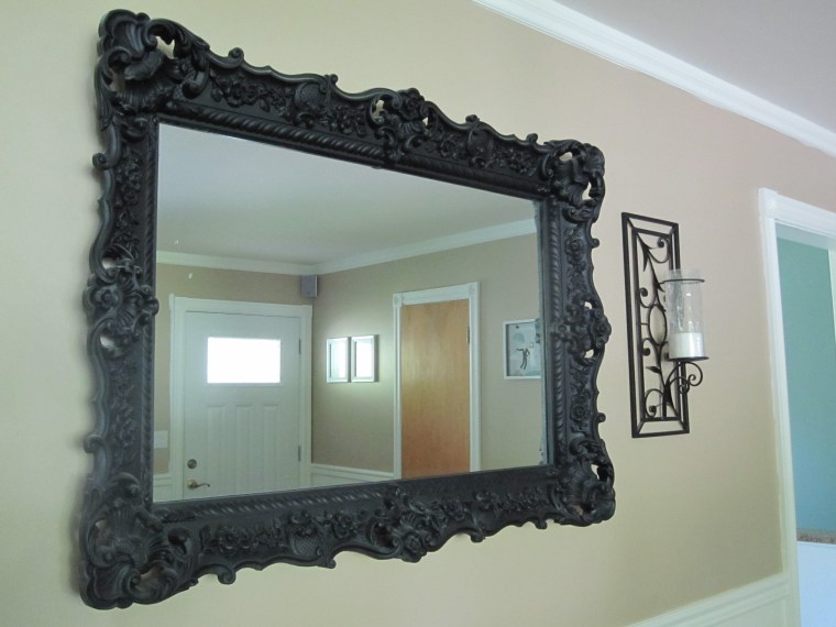 Chair: Hom Furniture Mirror: Garage Sale-only $5.00! Candle Sconces: Linens N Things Pillow: I made it. Here’s how.