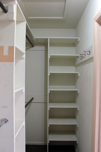 Speaking of trim, I painted it off-the-shelf white Glidden Duo in eggshell. Then gave Frog Tape a chance for redemption by taping off the trim before painting the walls. And I cringed while doing so, because I had painted the trim the day before. But, I also used the Duo to paint the bookshelves, and it seemed to harden quicker and be more durable than regular Glidden.