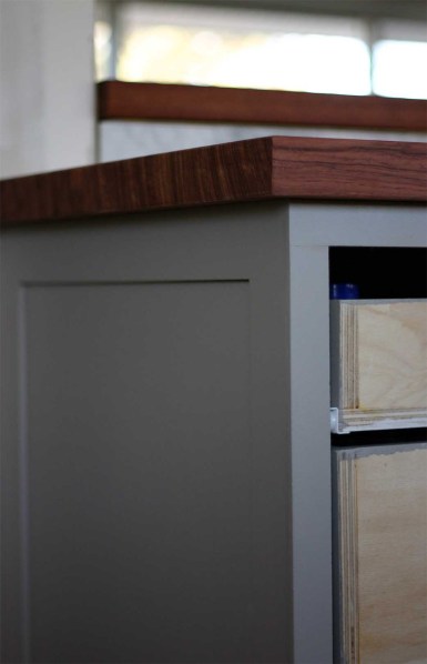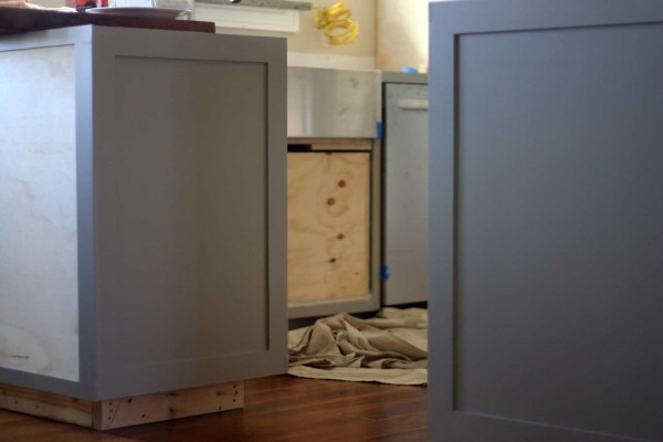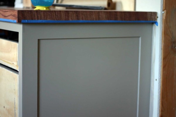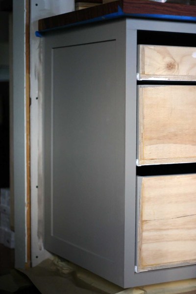 We considered spraying the cabinets before installing, but decided against it because we wanted to add the face framing after for the smoothest finish possible. And we should be able to touch up the rolled finish down the road without it being obvious.