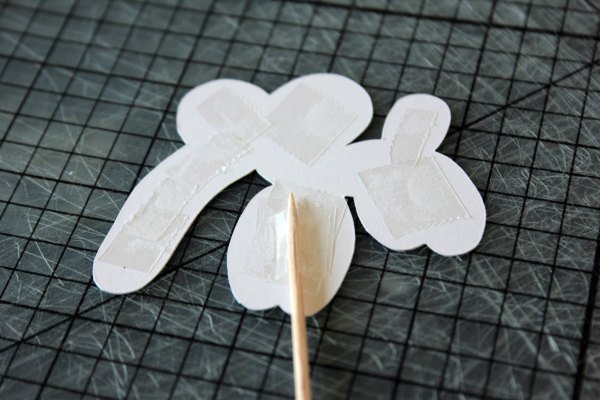 Several pieces of double-sided tape and a toothpick on the back of one.