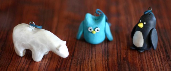 We’ve been at it again. Making Christmas ornaments, that is. Jeesh, get your mind out of the gutter. Haha. This time, I’ve strayed away from glass balls and moved toward polymer clay. I had one package of white clay waiting to be used. Christmas is the perfect time, I guess. I don’t have a real tutorial for these because I was fiddling around while watching Bones one evening. By the way, is anyone else in love with Booth? Anyway, I crafted an owl and a penguin.